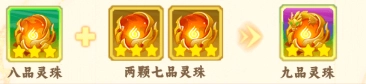 说明:1颗八品灵珠加2颗七品灵珠可以合成1颗九品灵珠九品为高品级