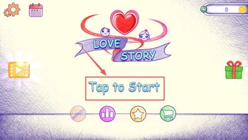 首先,点击“LOVE STORY Tap to Start”进入游戏,轻触屏幕就能跳过开场动画。