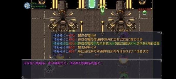 神格搭配方面,简单模式推荐选“溅射”神格,既省心又实用;困难模式则可以搭配“最终伤害+再动”或者“回合结束时有50%概率为队友施加伤害增益buff”的神格,这样能更好地适配高阶挑战。