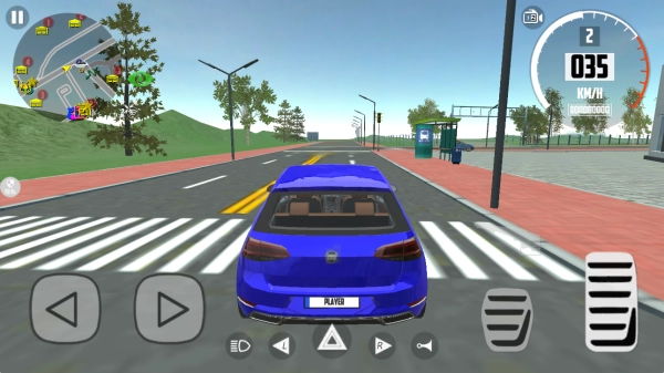 通过左侧的左右按键操控车辆的移动方向,右侧按键则负责控制油门、刹车和倒车;此外,还能通过操作让角色上下车进行加油。