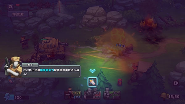4、在战场上运用指挥官能力,能够助力你迅速清除敌人的火力点,让通关变得更为轻松。