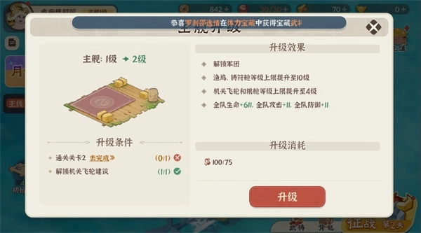 升级战船需要建材和主舰经验,而这些资源可以通过日常任务和主线关卡获取。每天只需花10分钟完成日常任务,就能积累到足够的资源来升级战船。