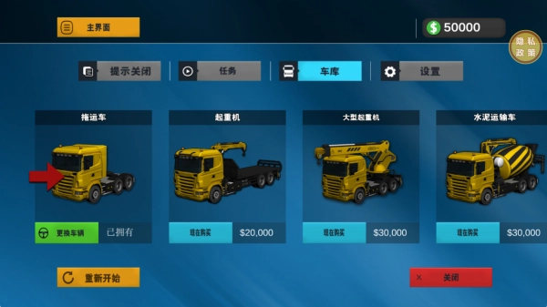 可以通过完成任务获取收益,用这些收益解锁冷藏车、油罐车等专业类型的车辆,每一款车辆都具备独一无二的操控特点。