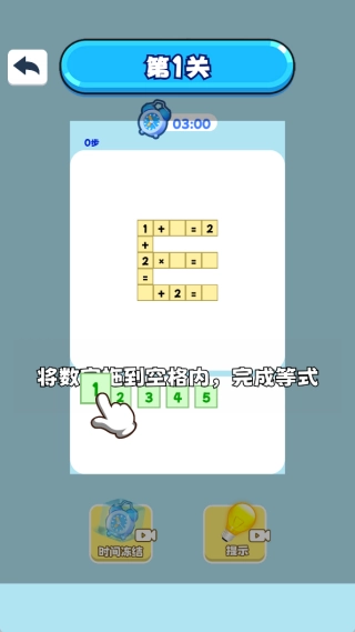 每个关卡挑战都设有时间限制,玩家得迅速思考,确定每个数字的摆放位置。