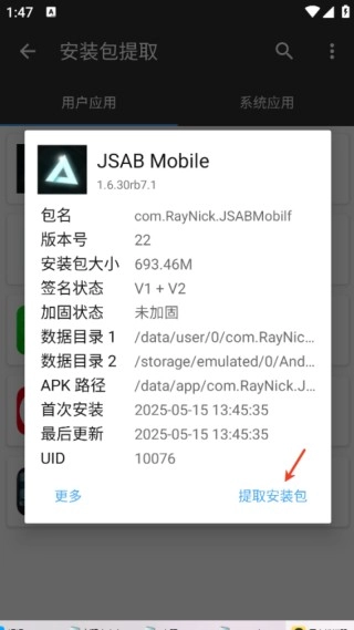 3、寻找到游戏图标,点击后选择提取安装包。