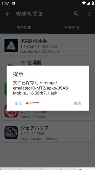 4、完成提取后,点击定位选项。