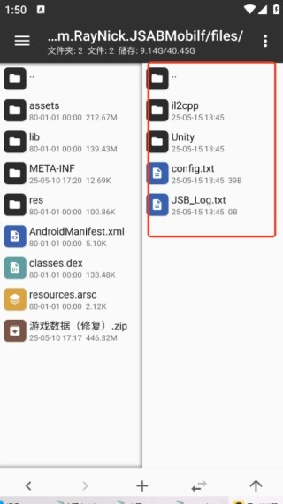 6、接下来在右侧文件中,按顺序依次点击Android——data——com.RayNick.JSABMobilf——files,最终呈现的界面如下图所示。