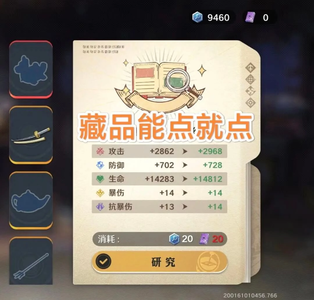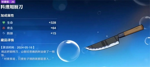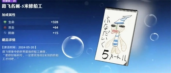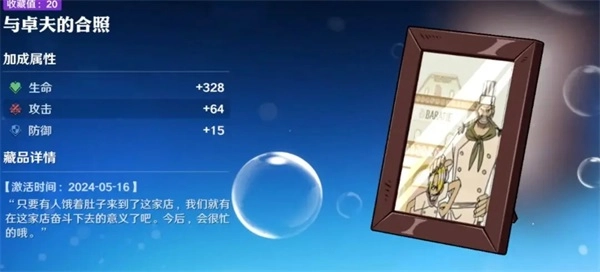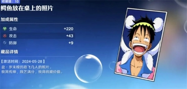 这件藏品于主线剧情中亮相,它把原作里的搞笑情节融入到了游戏剧情的藏品之中。而且,该藏品能够提升“生命”“攻击”“防御”属性。其获取途径是主线剧情13 - 1,进入关卡后径直向左走,在左边的桌子上便能捡到。