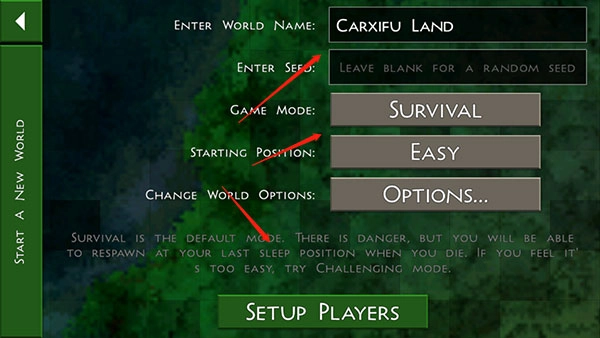 3、世界名称最好不要用中文,直接输入数字,然后这个是游戏模式,这里有注释;