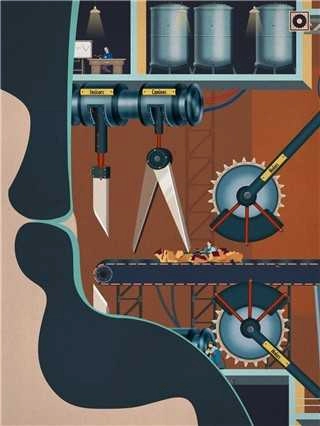 这个部分的模拟设计挺巧妙的,用切断食物的铡刀对应门齿,切碎食物的剪刀对应犬齿,还有磨碎食物的磨盘对应臼齿,把人类牙齿不同部位的功能都清晰地对应起来了。