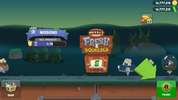 抓到僵尸后,你就可以把僵尸抓到地下工厂,然后一一丢进榨汁机里,榨汁机会制作出各种口味的果汁出售的外星人顾客,果汁出售后可以获得金币,金币可以用来升级装备和扩建工厂。
