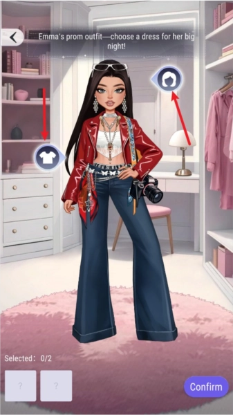 对话结束后,我们就该开始装扮环节了,要依据关卡的具体要求,对指定的部位进行打扮。