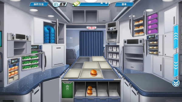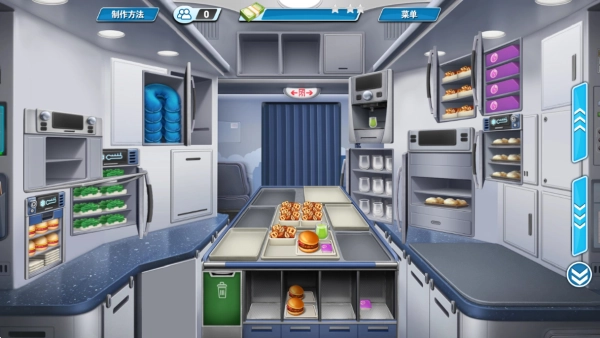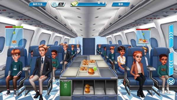 玩家需要对飞机上的紧凑型厨房空间进行管理,通过合理规划各个工作台的功能布局来提升出餐效率。