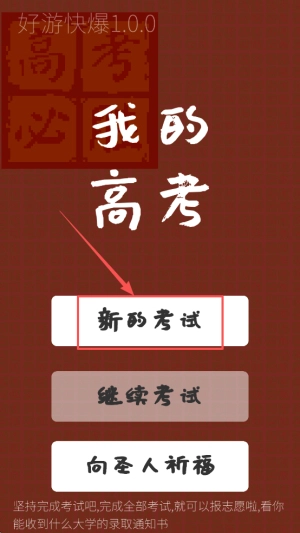 进入游戏的步骤如下:先打开游戏主界面,然后点击“新的考试”或者“继续考试”选项,即可进入高考备战模式。