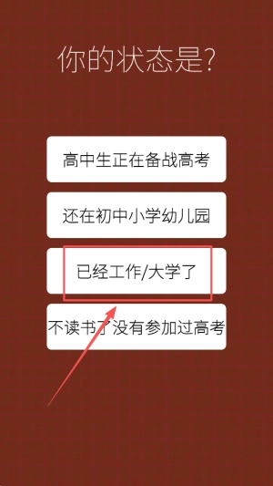 选择身份:在状态选择界面,点击“高中生正在备战高考”或其他符合自身情况的对应选项,完成身份确认后,即可进入后续操作步骤。