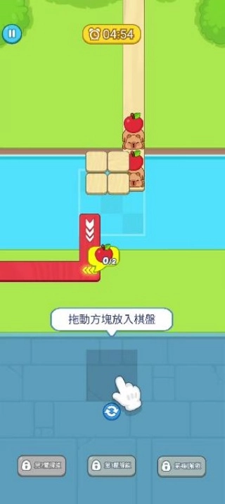 根据关卡地形,把不同形状的拼图块放到合适的位置,就能为水豚搭建出通路。