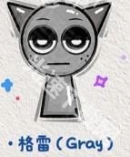 格雷在普通状态下是浅灰色皮肤,长着猫耳,脸颊上有黑色雀斑,神情显得有些无聊。切换到恐怖模式时,他的肤色会变暗,耳朵耷拉下来,眼睛也睁得很大。他的嗓音如同贝斯般浑厚低沉(贝斯/低音14)。
