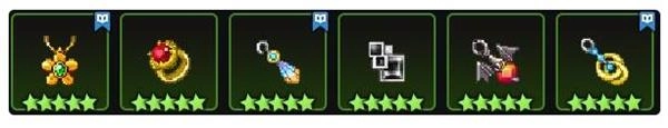 游戏中后期的盾牌大多会集中摆放在第一行的位置,其中比较典型的有红框的镜子盾,以及牛头人盾。
