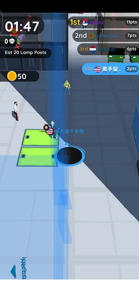 5、游戏刚开始时,我们能够挑选诸如人、垃圾桶、下水道井盖这类较小的物品作为吞噬目标。