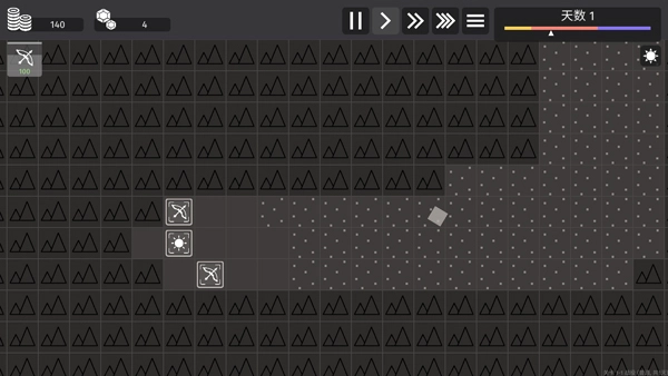 4、玩家首先建造并放置各类防御塔,借此抵挡敌人的攻击。