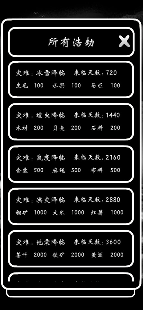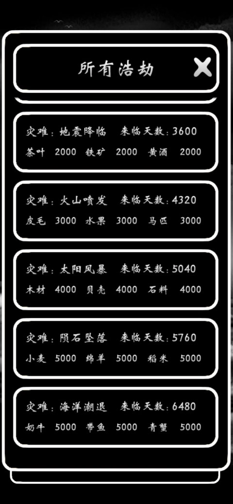新增36种可交易的资源物品,初始健康值调整为100,下调了部落间的交易汇率,提升了进贡事件的触发概率,增加了人口获取事件中的人口数量,修复了太阳风暴劫难的相关问题,新增陨石劫难与海潮劫难两种灾害,异族部落名称旁会显示其所需的交易资源