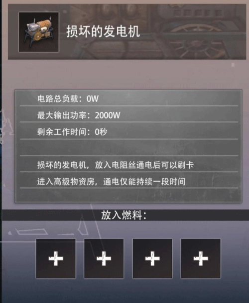 发电机:主要功能是启动芯片房的电源,使用时需要放入电阻丝来供电;此外,它也能用于家庭照明。
