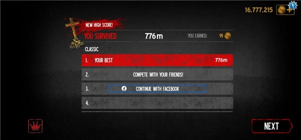 选好道具后,点击“PLAY”按钮就能开启游戏。角色前进时,屏幕左上角会实时记录已奔跑的距离,该记录会持续到角色死亡才停止。