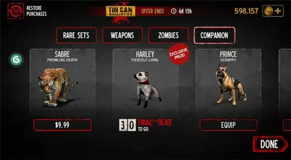 这是个有意思的辅助系统,每隔一会儿就会有宠物伙伴来帮你战斗,助你清理前方的僵尸。能解锁的伙伴有老虎、狼、狗之类的。