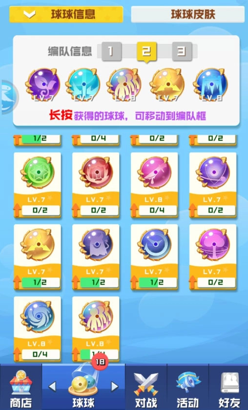 游戏里设计了多种多样的球球类型,每个都具备独特的技能特质。重复获取的球球还能用来提升等级,从而增强整体的战斗能力!