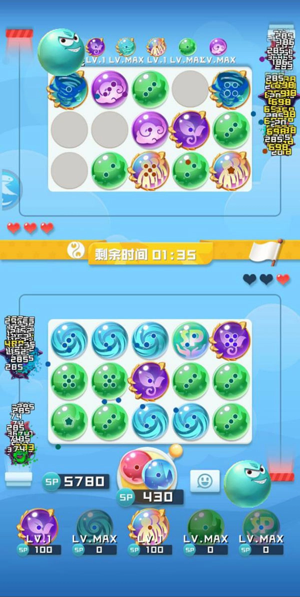 系统会随机为你匹配对手,你们将各自掌控一片战场。对手消灭的怪物会被转移到你的场地,每个人都有三点生命值,一旦防线被突破一次就会失去一点,生命值归零就意味着失败。整个过程既紧张又刺激,需要脑力和运气的双重配合!