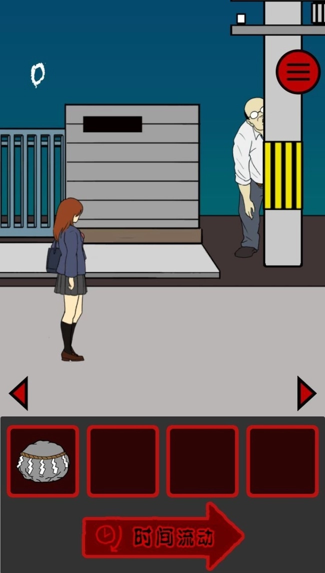 第一关的操作很简单,你要操控妹妹勇敢地往前走,千万别回头。等痴汉从电线杆后面出来后,在他面前放个猪头让他吃,这样就能安全到达终点了。