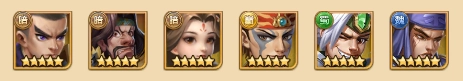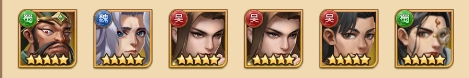 孙坚在前排承受伤害;刘备负责队伍的血量回复;孙策、曹操和司马懿主要承担控制任务,并施加中毒效果;张辽则负责收割敌人,他自带的天赋能让毒系效果的伤害达到最大化。