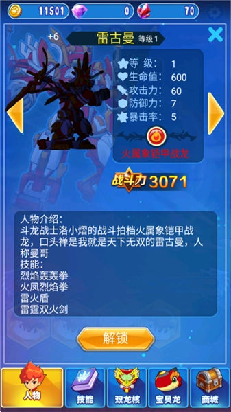 斗龙战士4双龙核是以同名动画为蓝本打造的放置挂机游戏,游戏里每个龙的形象与技能都高度还原了动画设定,能让玩家在游玩过程中重温动画里的精彩瞬间。玩法方面,游戏采用全自动战斗机制,战斗前玩家需要合理搭配角色阵容。此外,游戏内容相当丰富,涵盖了无尽闯关、斗龙争霸赛、宠物大乱斗等多种玩法,感兴趣的玩家不妨来体验一下。