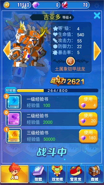 你能够借助道具为角色增加经验值以实现升级,角色的等级越高,其战斗力就越强。