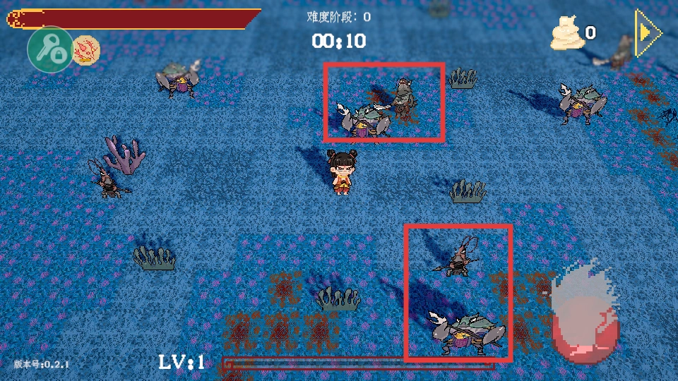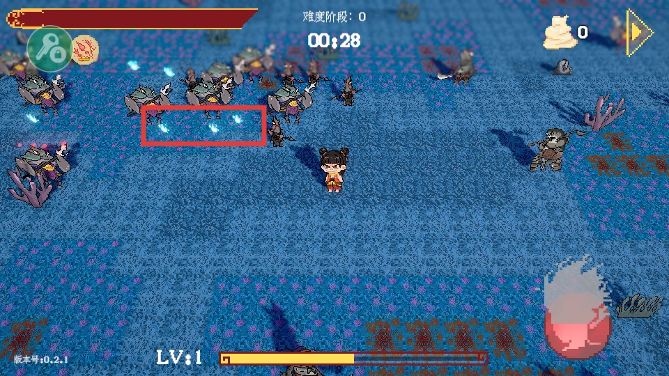 击杀敌人后会掉落经验球,操控角色进行拾取。