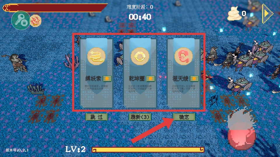 拾取经验球完成升级后,挑选合适的法宝,点击【确定】按钮进行装备,以此提升哪吒的战斗能力,为接下来的战斗提供助力。