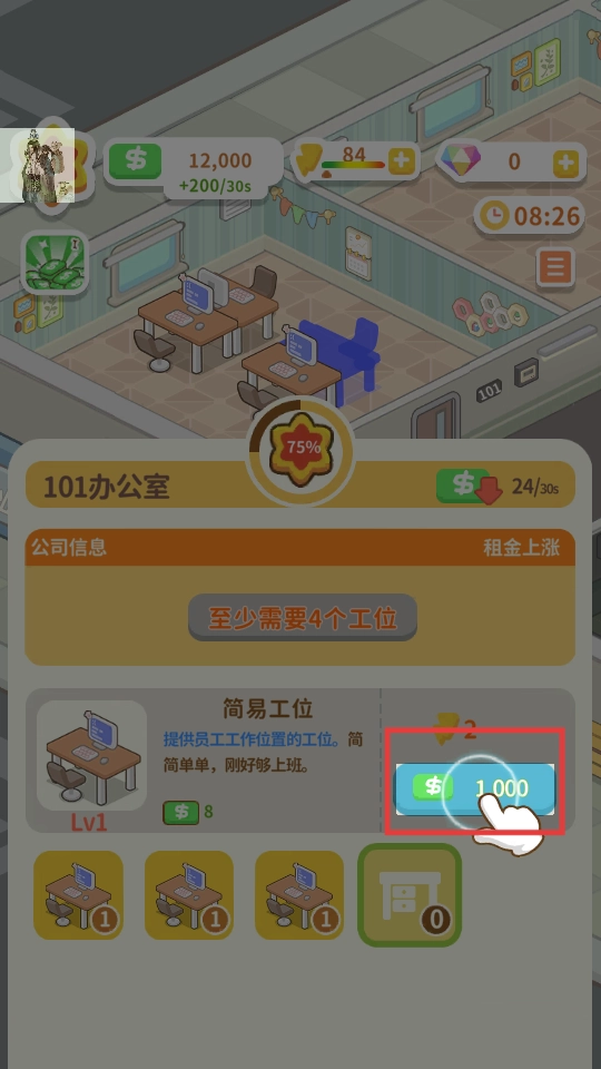 公司投入1000元购置简易工位,以此增加工位总数,助力运营能力的提升。