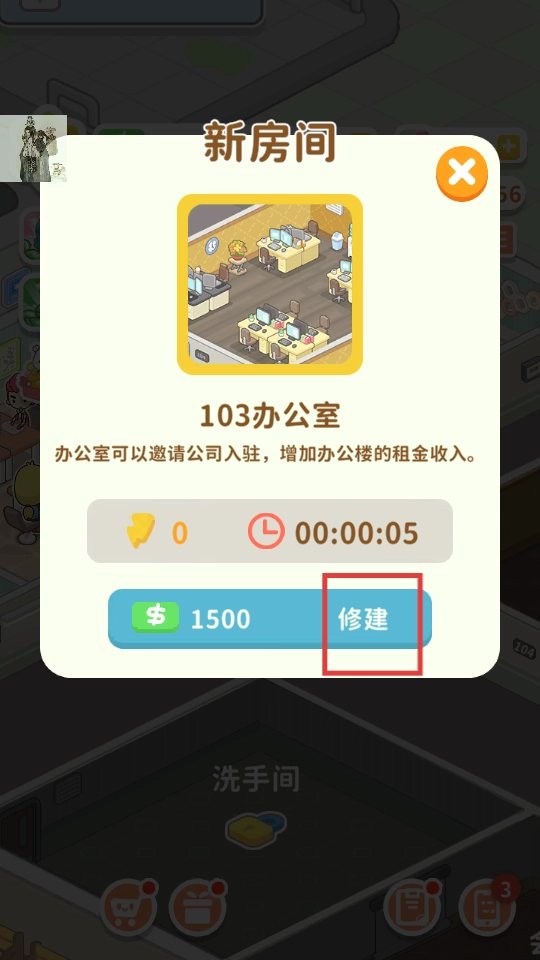 花费1500元用于103办公室的修建工作,以此吸引公司入驻,进而提高租金收入。