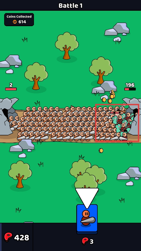 指挥士兵进攻敌方洞穴,消灭敌人,获取金币奖励。