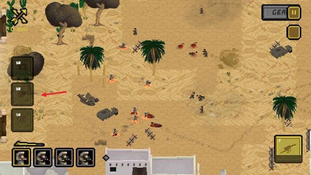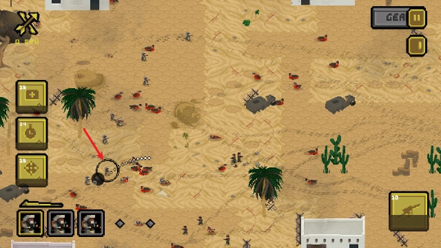 选中士兵后,我们可以通过拖动屏幕来瞄准,这样就能投掷手榴弹了。