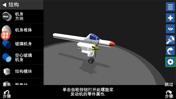机翼搭建完成后,需要安装发动机,可选择喷气式或螺旋桨类型。