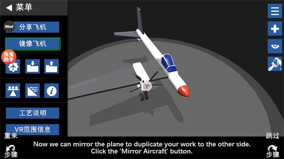 放置完成后,点击镜像飞机功能,就能将已放置的一半复制到另一侧,这样一架完整的飞机就创建完成了。