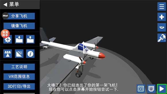 建造好后就可以点击右下角的按钮进行试飞了。