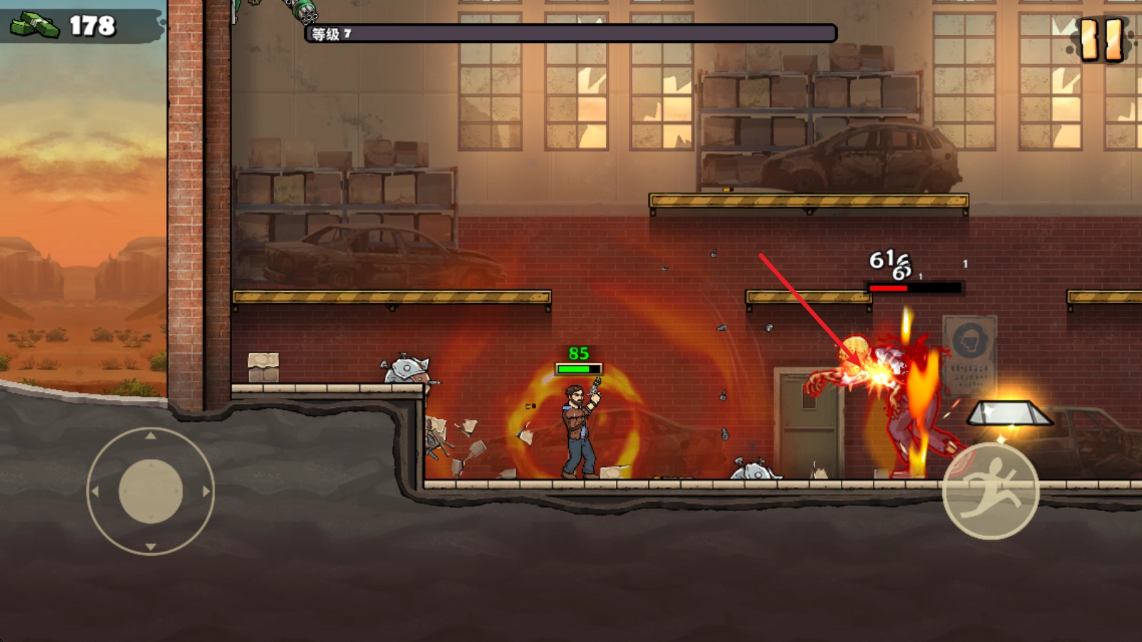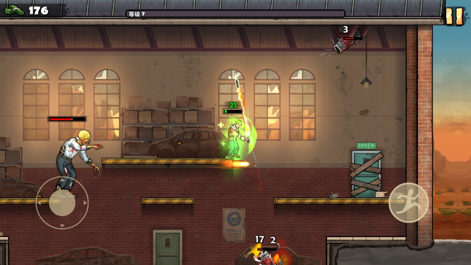 靠近僵尸后,角色就可以自动射击了。