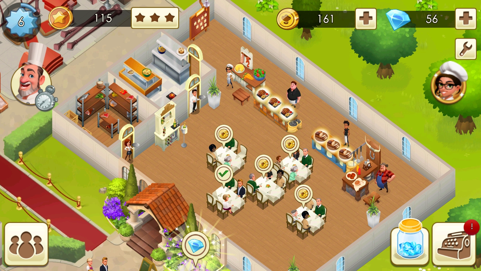 随着玩家等级逐步提高,我们可以雇佣更多来自全球各地的厨师,解锁更多可口的美食,使菜单变得更加丰富多样。