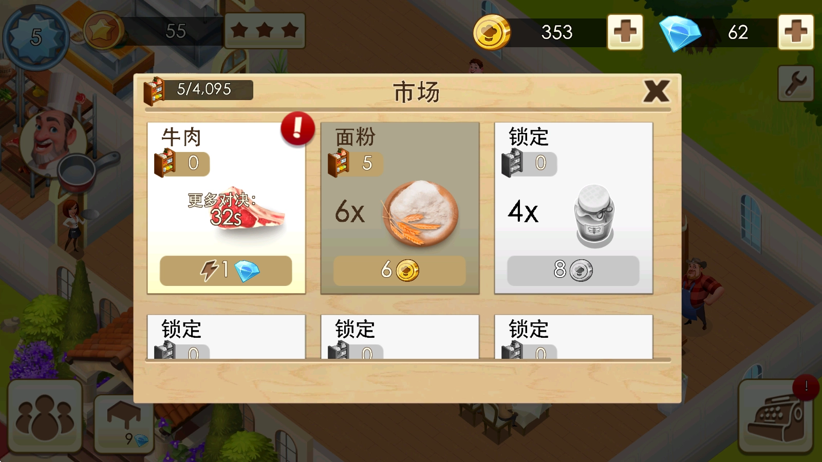 游戏中,我们需要先到市场当中购买食材。