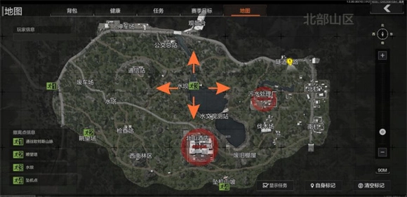 地图的正北方是公交总站和观景台。要是大家进入北山地图时正好在北侧,不妨去观景台转一圈。虽说这样会错过第一时间探索北山酒店的机会,但也能避开和一些实力较强的先锋小队正面冲突。观景台外有2到3个游荡者看守,清理掉他们就能进去探索了。一楼有不少杂物和容器,还有个上锁的观景台办公室,里面有一个保险箱、一件防寒大衣和一台电脑。如果有观景台钥匙,非常推荐来这里走一趟。建筑物的二楼有一大一小两个办公室,里面有大量可以收集的电子产品、医疗物资和工具。如果是单排进入,观景台的物资足够让你满载而归。