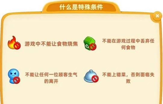 每个关卡都具备独特的特殊条件,这些条件或许是对食物口感的严苛要求,亦或是对上菜时间的精准掌控。若想战胜这些挑战,你得认真阅读关卡说明,知晓并达成这些特殊要求。这不仅考验着你的烹饪技艺,还锤炼了你的观察能力与应变能力。