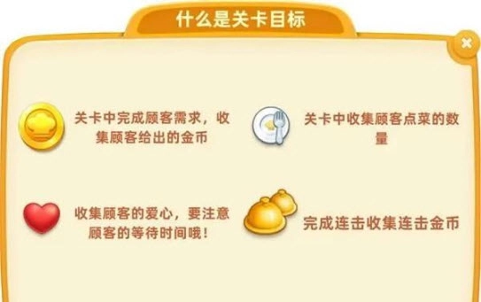 《小镇大厨》的关卡设计极具创意且趣味十足。除了经典的金币收集关卡,游戏还设置了盘子收集、爱心收集以及连连上菜等多元化的关卡目标。这些各异的目标需要玩家灵活运用多种策略来完成。比如,在爱心收集关卡里,玩家要时刻留意顾客的心情值变动,及时提供合心意的美食来帮他们恢复心情;而在连连上菜关卡中,就得尽量提升连击次数,以此获取更多额外金币。