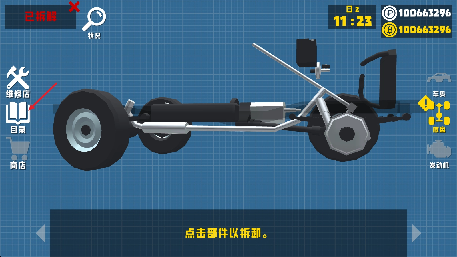 接下来,我们可以通过拖动屏幕来观察汽车,查找损坏的部位。要是一时找不到,还能点击左上角的“状况”按钮,它会帮你定位问题所在。
